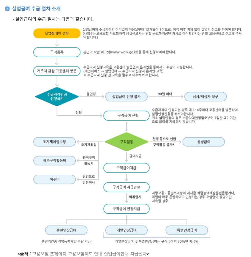 실업급여 수급 절차는 다음과 같이 단계별로 진행됩니다: