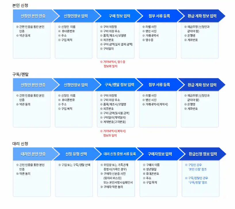 - 구매자·신청인·환급 계좌 예금주 동일 확인